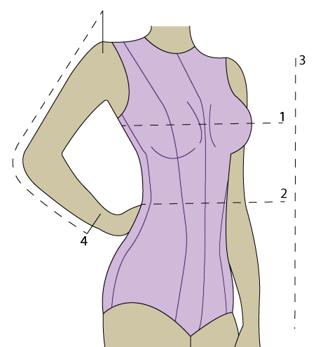 Manga (4) - Em centímetros, é a medida da manga do ombro ao pulso com o braço na posição indicada;